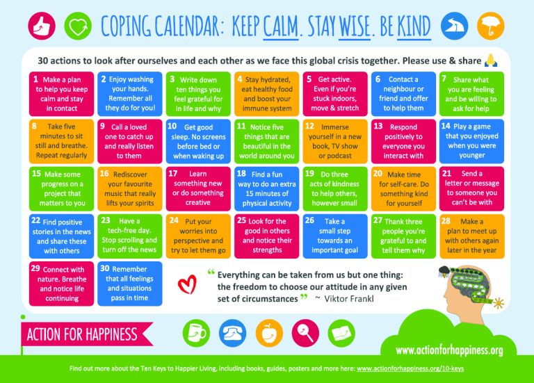 A coping calendar with 30 actions to look after ourselves and each other as we face this global crisis together.