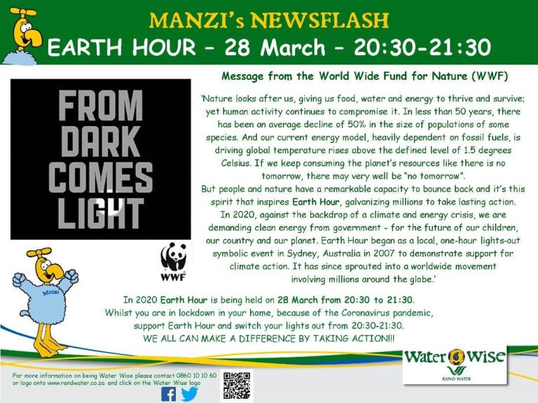 Whilst you are in your home because of the Coronavirus pandemic, support Earth Hour and switch your lights off from 20:30 – 21:30. We can all make a difference by taking action.
