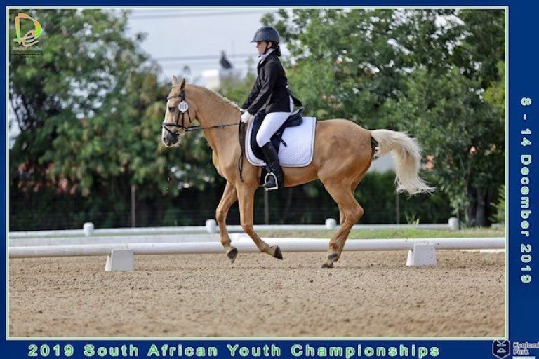 Emma-Jayne Simmonds participated in the Pony Rider Novice Dressage competition at SA Champs at Kyalami Equestrian Park in December 2019. Despite the dismal weather, Emma-Jayne and her pony Midas Touch managed to finish in 3rd Place taking the bronze medal in the Novice Dressage Final Competition Round.