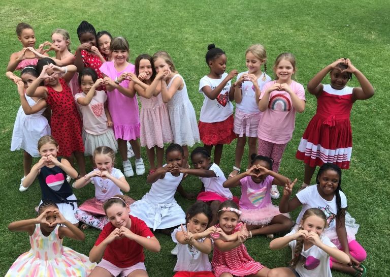 Our Grade 2 girls looked beautiful in their pink and red Valentine's Day outfits today.