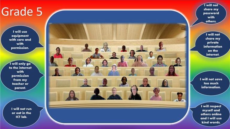 The grade 5s learnt about the use of "words" online. They watched a video followed by a discussion and signing of the digital citizenship pledge. They were given the rules of STOP- step away, tell someone, "ok" sites first, pause and think online.