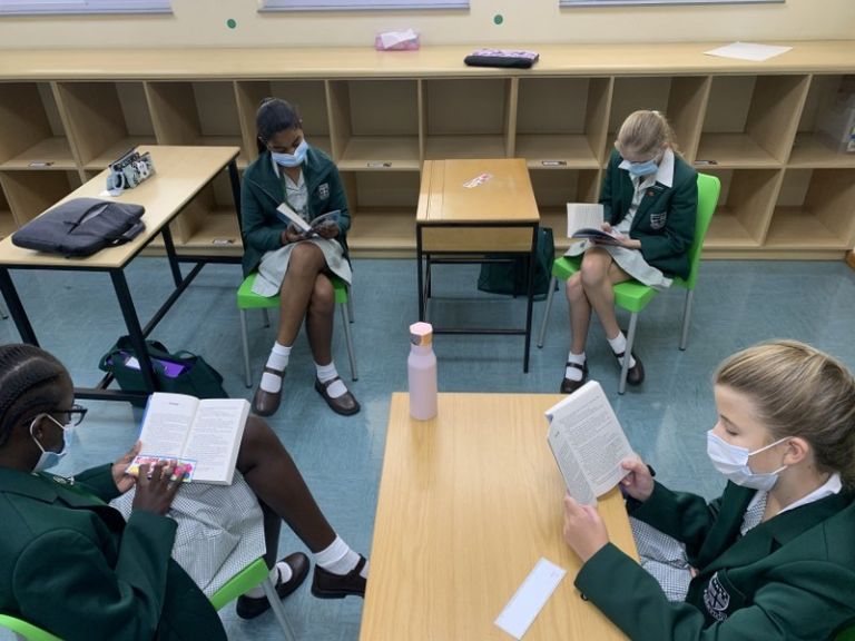 The Grade 6s were celebrating World Read Aloud Day (WRAD) 2021 during their reading lessons today, 3 February 2021. WRAD is an annual event which takes place on the first Wednesday of February. The main purpose of WRAD is to encourage people around the world to celebrate the joy of reading aloud. LitWorld, founded by literacy expert Pam Allyn, launched the first WRAD in 2010. The Grade 6s are eager to read their books which include classics such as “The Railway Children” and “The Secret Garden” as well as “The Borrowers” and “Wonder”. “Our girls are loving the opportunity to read together in socially distanced groups. They are exploring texts and authors which they might not choose for themselves, as well as developing their reading skills and vocabulary,” said Mrs Wendy Sauthoff, Grade 6 English Teacher.