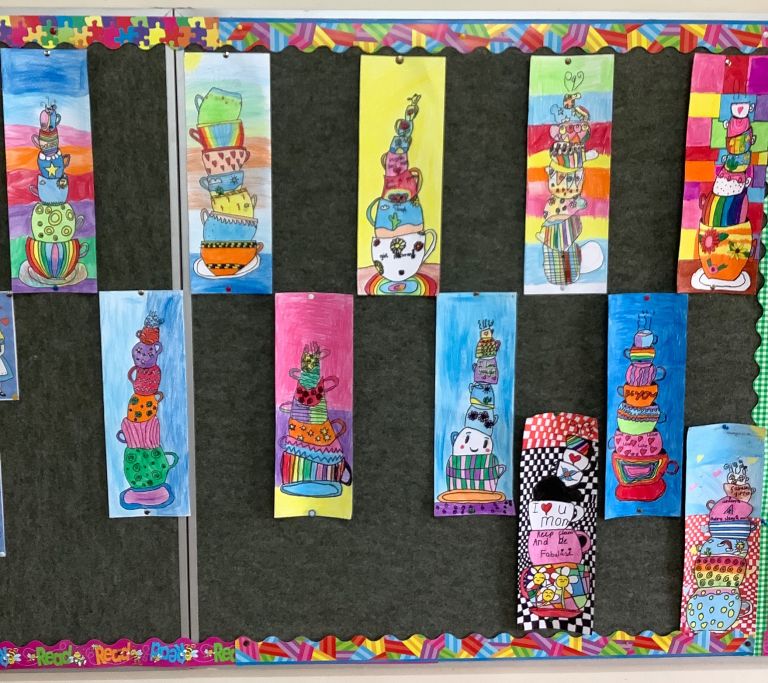 The Grade 3s have been enjoying an adventure ‘down the rabbit hole’ with their theme of Alice in Wonderland. For Art the girls were challenged to draw the stacking tea-cups from the Mad Hatter’s Tea Party. The girls had to plan their work carefully taking into consideration the proportion of the cups to ensure that they filled the whole page. Such beautiful work!