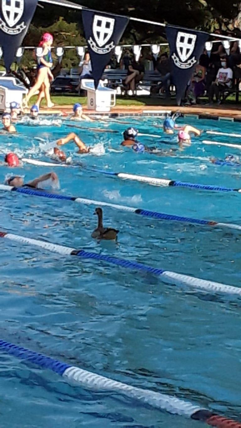 Our Primary School swimming team were outstanding last night at the 50m night gala hosted by St Stithians. The (Grade 4 – 7) girls swam both individual and relay races, and all the hard work that they have put into training and preparation for galas was clearly evident. Brescia House School came 3rd by 14 points to St Peter’s who came 2nd. Well done to all our swimmers and coaches – we are so proud of you all. (Even the resident goose couldn’t resist joining in on the fun!)