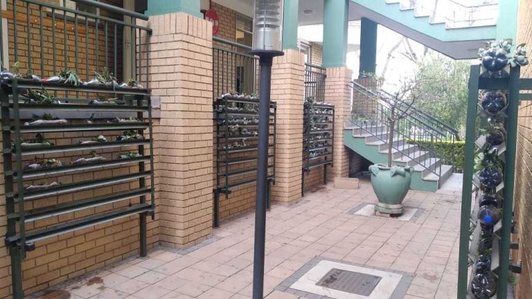Our vertical green wall project, undertaken by the eco committee, included collecting bottles during recycling week and preparing them, deciding during water week which waterwise plants will be used and finally culminating around arbour day with the final planting of the bottles. This is a lengthy project that will be visible for many years to come.