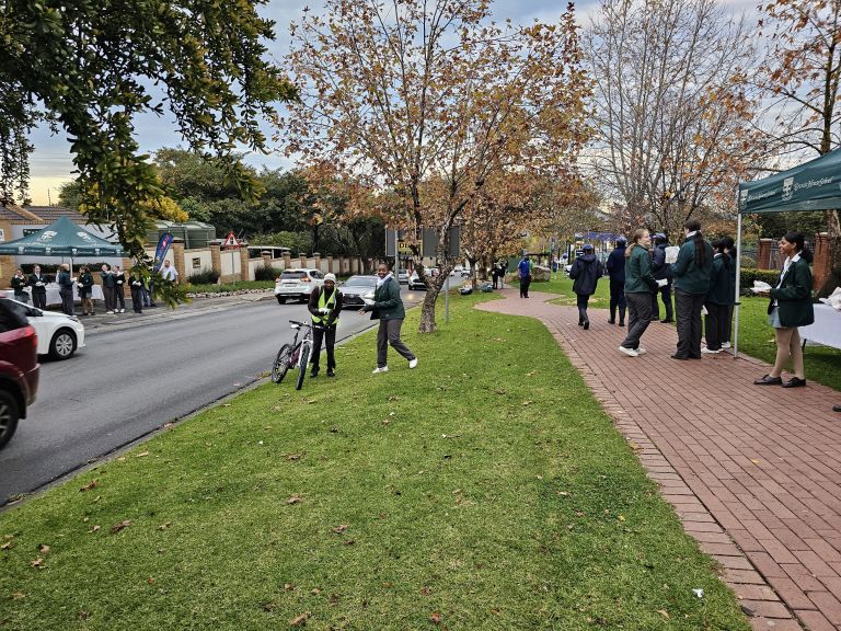 This morning, Brescia House School once again teamed up with Pick ‘n Pay Epsom Downs to serve freshly baked chelsea buns to passers-by on Sloane Street, Bryanston as part of their Catholic Schools Week. The Brescia House School pupils were out bright and early on the fresh, winters morning, ready to greet pedestrians and offer them a delicious treat.