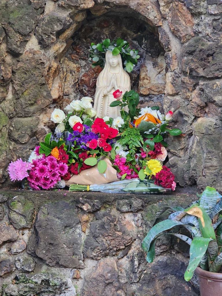 At Brescia House School we held the Crowning of Mary Service on Friday, 19 May, at the start of our school day. The service took place at the grotto with the statue of Mary. The Crowning of Mary is celebrated with special prayers and hymns, and a crown of flowers is placed on the head of the statue of Mary.